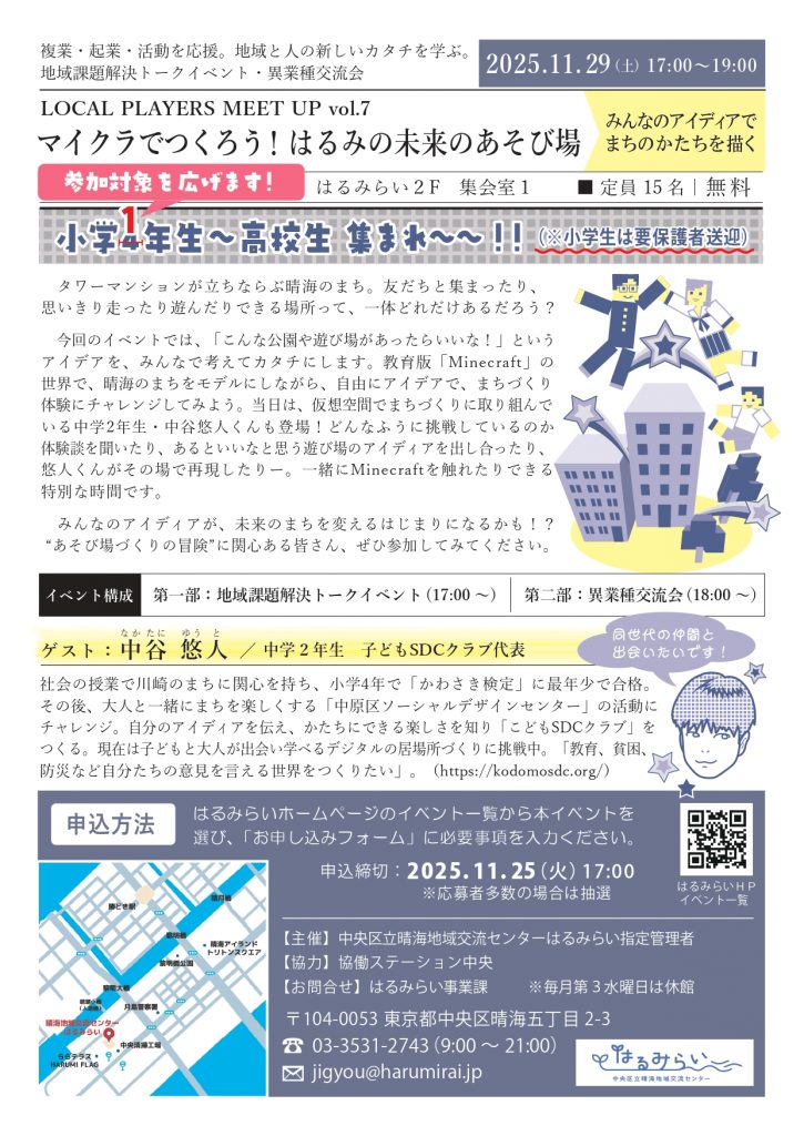 ~参加対象を広げました~【11/29(土)】トークイベント&交流会「マイクラでつくろう!はるみの未来のあそび場」