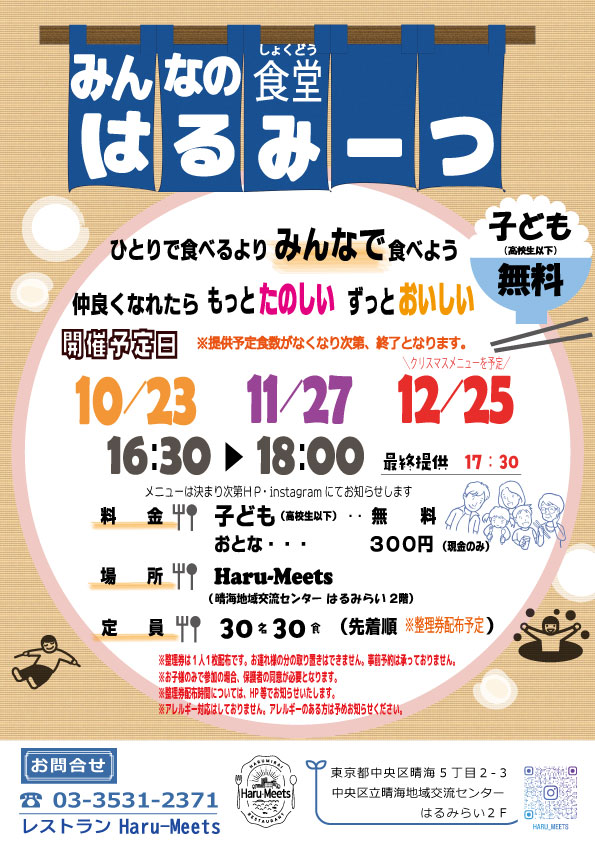 【みんなの食堂 はるみーつ】10月~12月開催のお知らせ