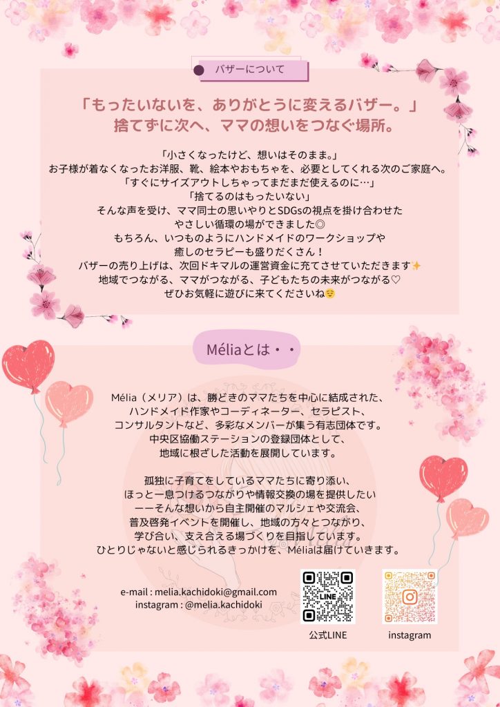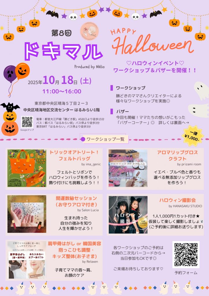 【地域活動スタジオ】ドキマル♡ハロウィンイベント♡ワークショップ&バザー(10月18日)のお知らせ 2025.10.04 10月18日(土)11:00~16:00 地域活動スタジオにて♡ハロウィンイベント♡ワークショップ&バザーを開催いたします。詳細は添付チラシにてご確認いただけます。 一覧へもどる