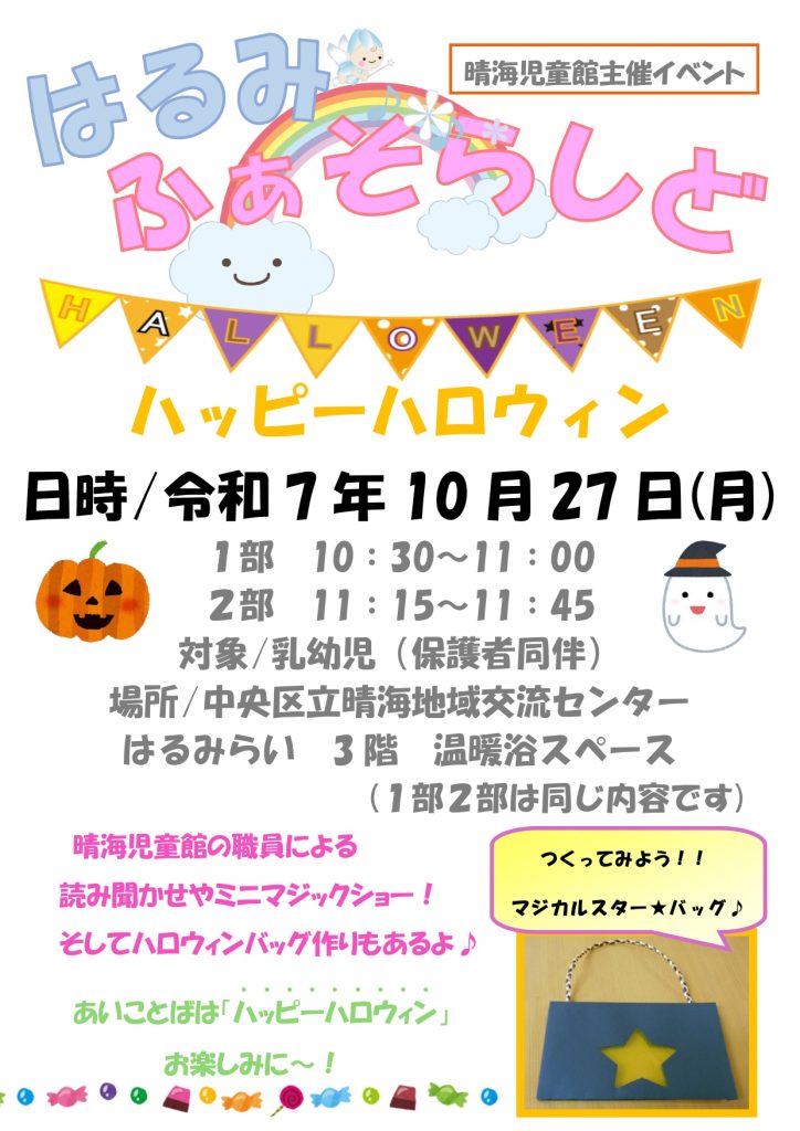 【10月27日(月)】晴海児童館主催イベント「はるみふぁそらしど」ハッピーハロウィン
