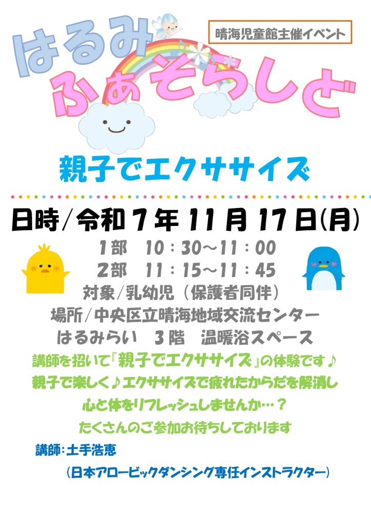 ~終了しました~【11月17日(月)】晴海児童館主催イベント「はるみふぁそらしど」親子でエクササイズ