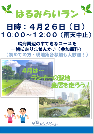 【3階トレーニングスタジオ】はるみらいランのおしらせ(4/26(日))