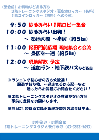 4月のランは「ランナーの聖地、皇居を走ろう♪」です。